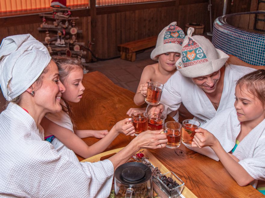 При бронировании проживания от 3х ночей скидка 20% на посещение банного комплекса